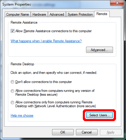 This is the final step after selecting a user that you will be able to add, and then have access to your computer remotely. In order to have RDP support, if you are seeking this route, please see our remote support ticketing at the following link: Http://networkdefensesolutions.com/support/remotesupport.php
